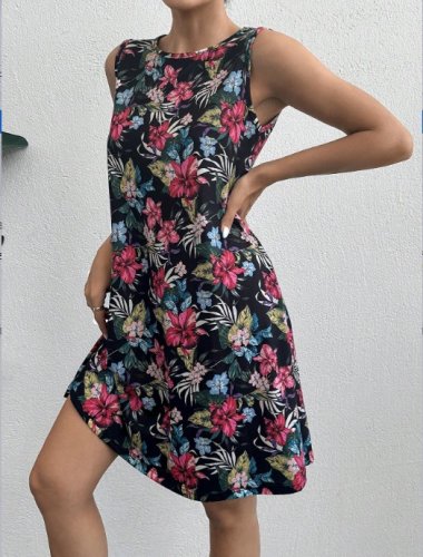 Kadın askılı yuvarlak yakalı asimetrik kesim detaylı viskon elbise