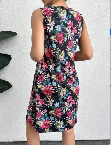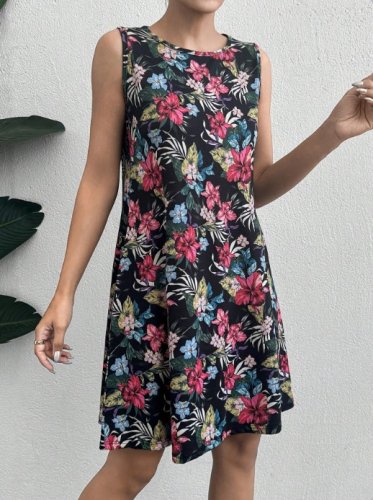 Kadın renkli çiçek baskılı süprem elbise