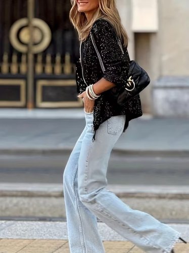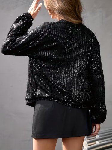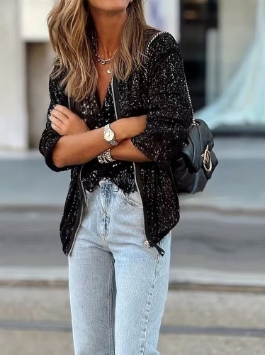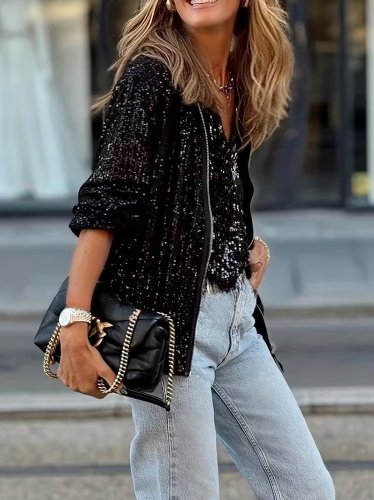 • Kadın uzun kollu önü fermuarlı kısa pulpayet ceket